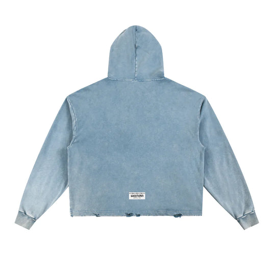 Contrast-Stitched Boxy Fleece Zip Hoodie
