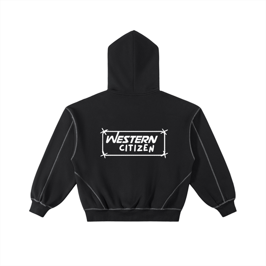 Contrast-Stitched Boxy Fleece Zip Hoodie